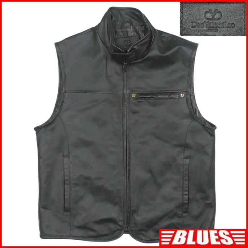 > 即決★Dan Valentino★メンズ M レザーベスト ジレ ダンヴァレンチノ ベスト 立襟 黒 ブラック 本革 ライダース 本皮 パンク ロック