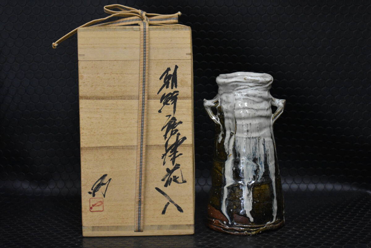 - うぶ品 時代物 池西剛 造 朝鮮唐津花入 共箱 花器 花瓶 古美術品