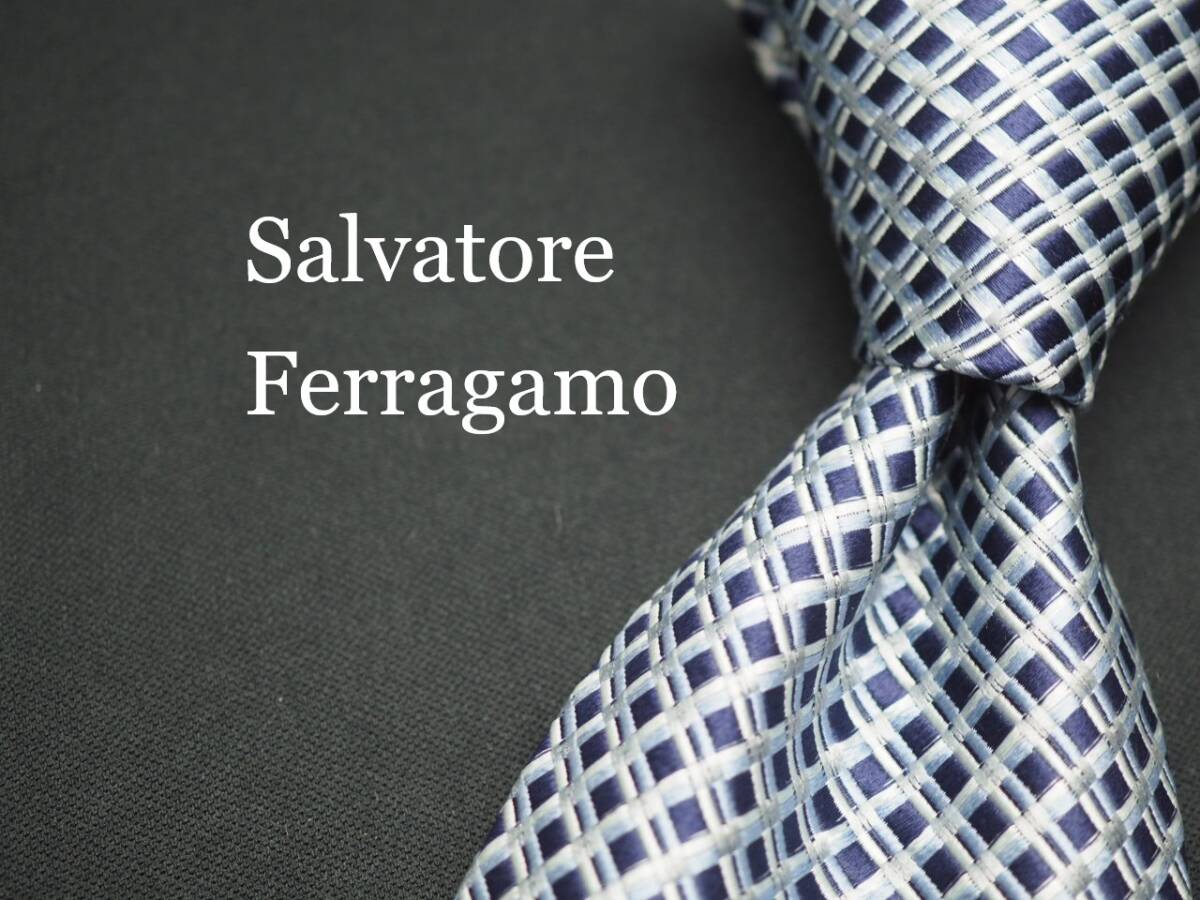 - 美品【Salvatore Ferragamo サルヴァトーレ フェラガモ】 F2645 シルバー ネイビー系 SILK ブランド ネクタイ 古着 良品 転売 仕入