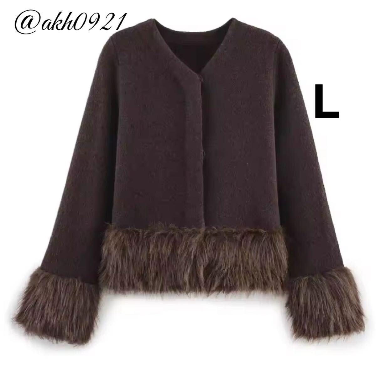 - 新品未使用★2025 秋新作★vintage ヴィンテージ レトロ brown ブラウン ファー ジャケット アウター Lサイズ レディース★ZARA 好きな方に