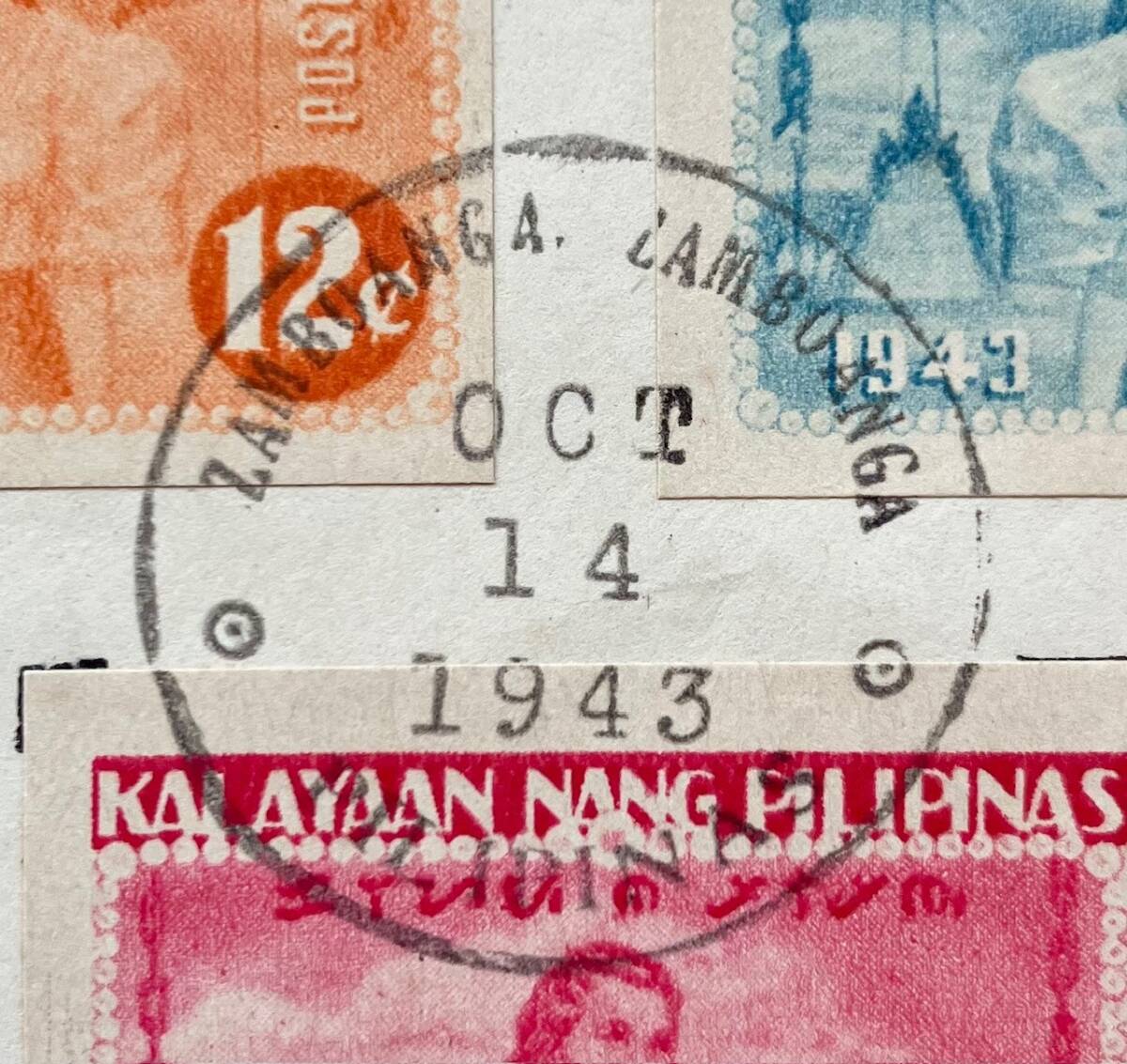 - 【南方占領地切手 フィリピン】地方(島)局 1943独立記念切手 FDC (加刷郵便封皮使用)ミンダナオ島ザンボアンガ局日付印
