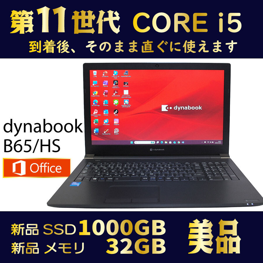 > 第11世代i5★美品★新品SSD1000GB★新品メモリ32GB★大きな画面15.6インチ★Windows11 Pro★Office★到着後すぐ使える★dynabook B65/HS②