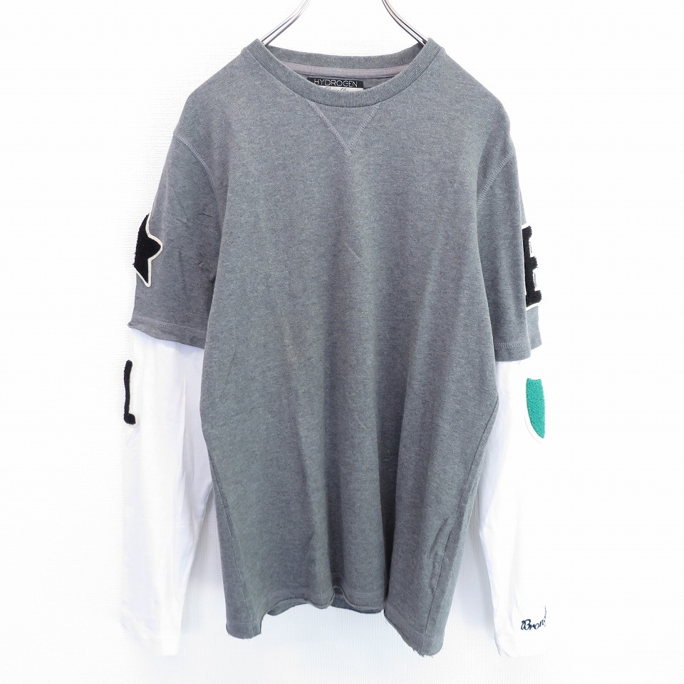 【ブランド】HYDROGEN BRONZAJI ハイドロゲン ブロンザージ【アイテム】カットソー 【表記サイズ】L【平置き実寸】肩幅:約 42cm袖丈:約 67cm着丈:約 68cm身幅:約 50cm【状態】やや傷や汚れあり【備考】袖に薄い汚れあり(画像参照)【色】グレー系【素材】画像をご参照くださいキーワード/アクイール/古着/used/ビンテージ/ヴィンテージ/プライベートライン/ワッペン/星/スター/