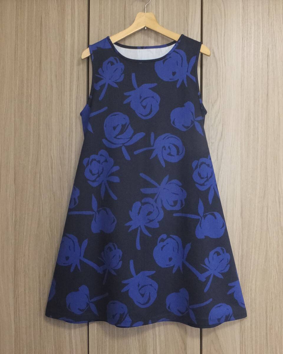 - ♪送料無料 ハンドメイド 綿 起毛コットン 花柄 ネイビー ノースリーブワンピース♪