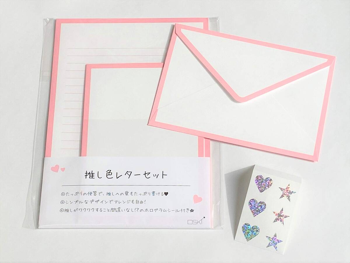 > ハゴロモ 推し色レターセット ピンク No.82140 人気 シンプル かわいい ファンレター 桃 封筒 洋2サイズ 便箋 A5サイズ シール付