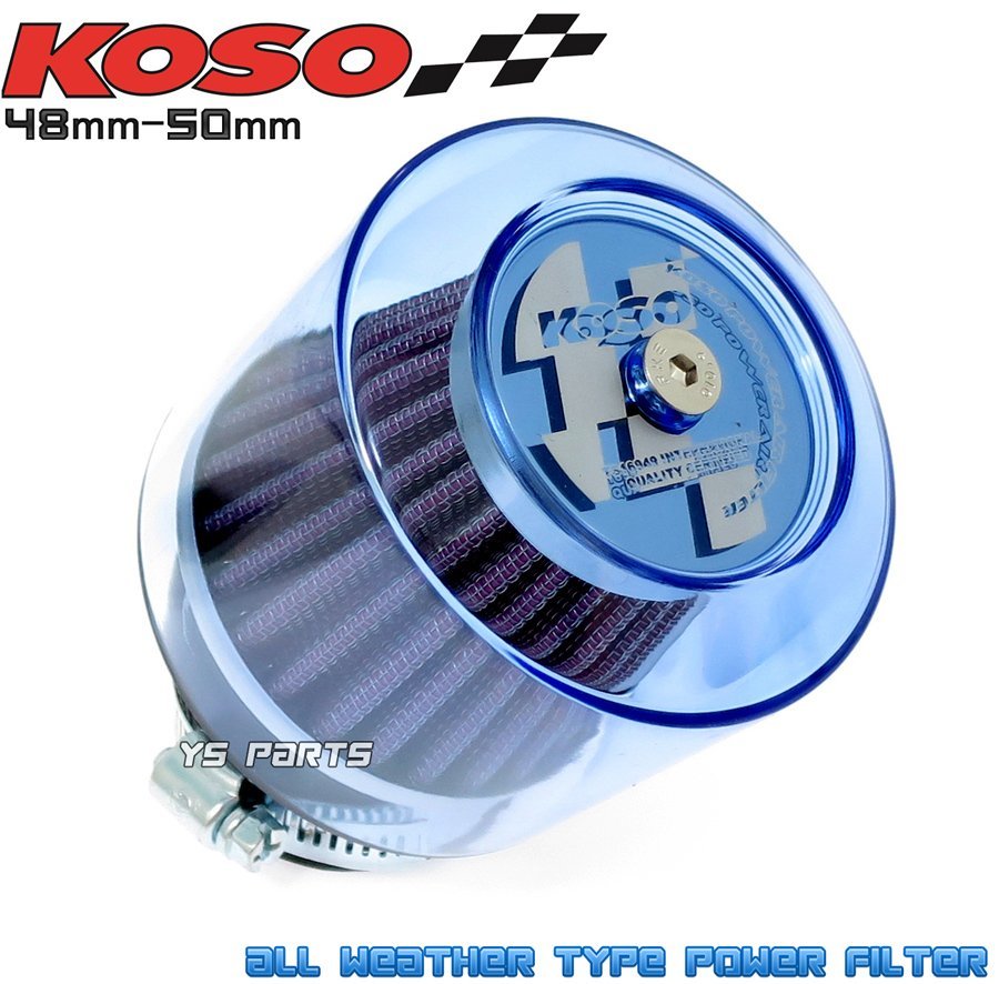 > KOSO全天候型パワーフィルター48mm-50mm青シグナスX/ジョグ2JA/ジョグ2TA/2TE/2EX/BW'S50[3AA]ジョグスポーツ3CP1チャンプRS/チャンプCX