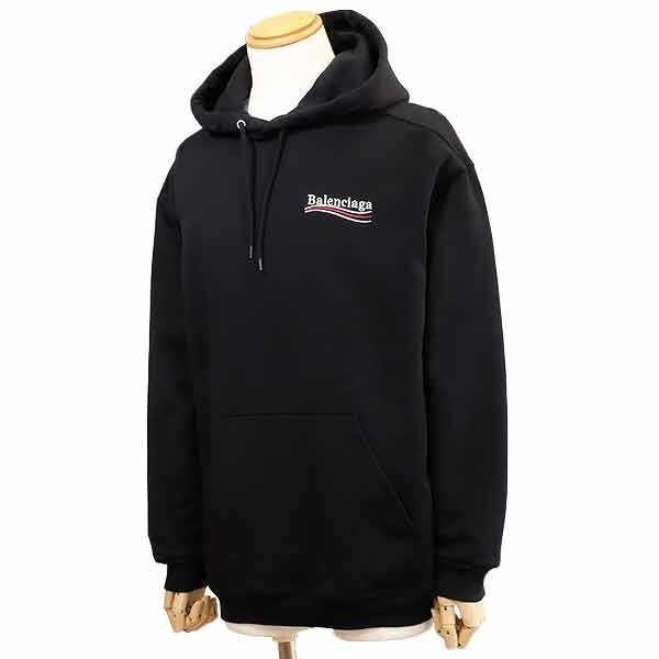 > 送料無料 本物 注目 BALENCIAGA バレンシアガ ミディアムフィットフーディ コットン100% ブラック M メンズ アートワーク刺しゅう 女性