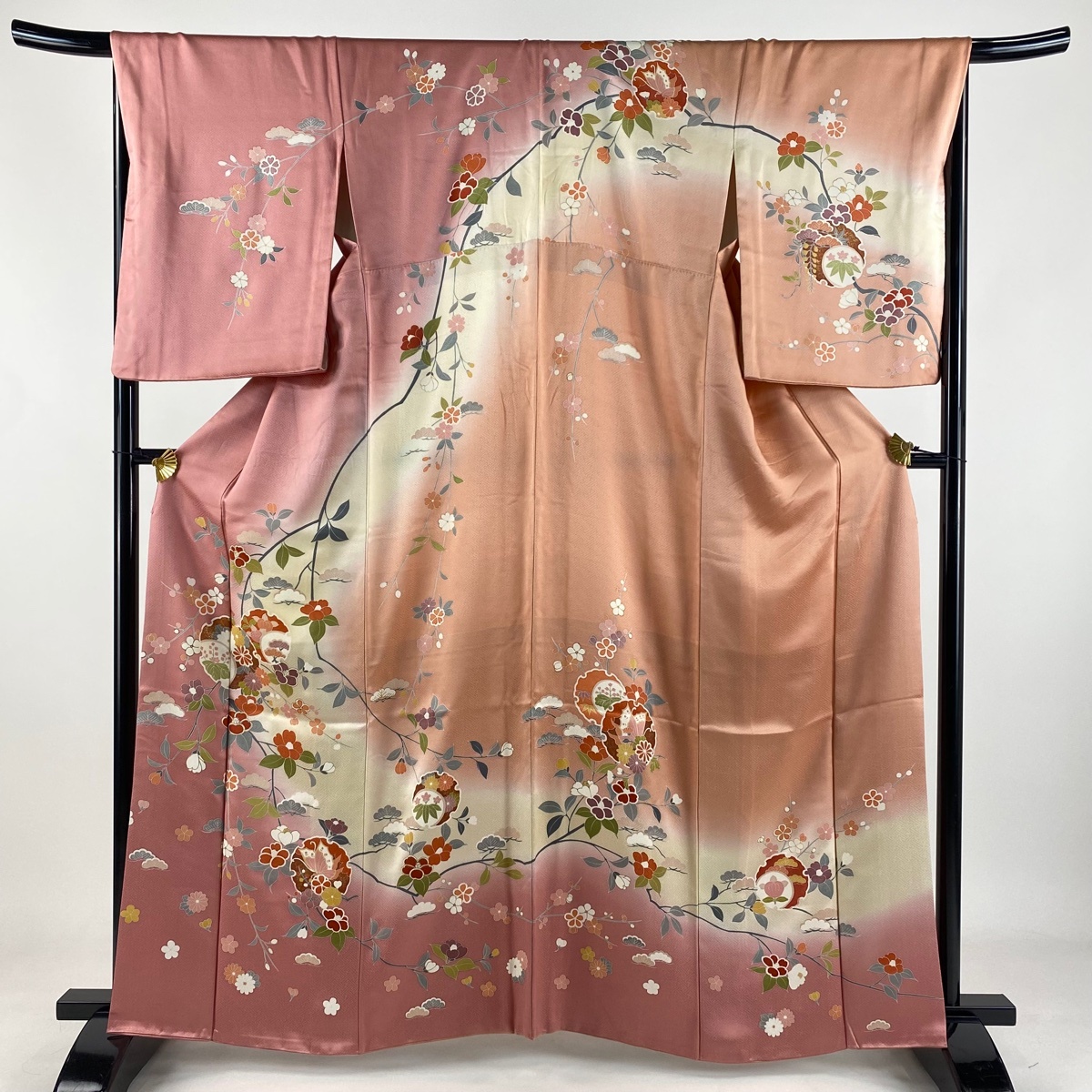 - 訪問着 身丈162cm 裄丈68cm L 袷 雪輪 椿 金彩 ぼかし ピンク 正絹 秀品 【中古】