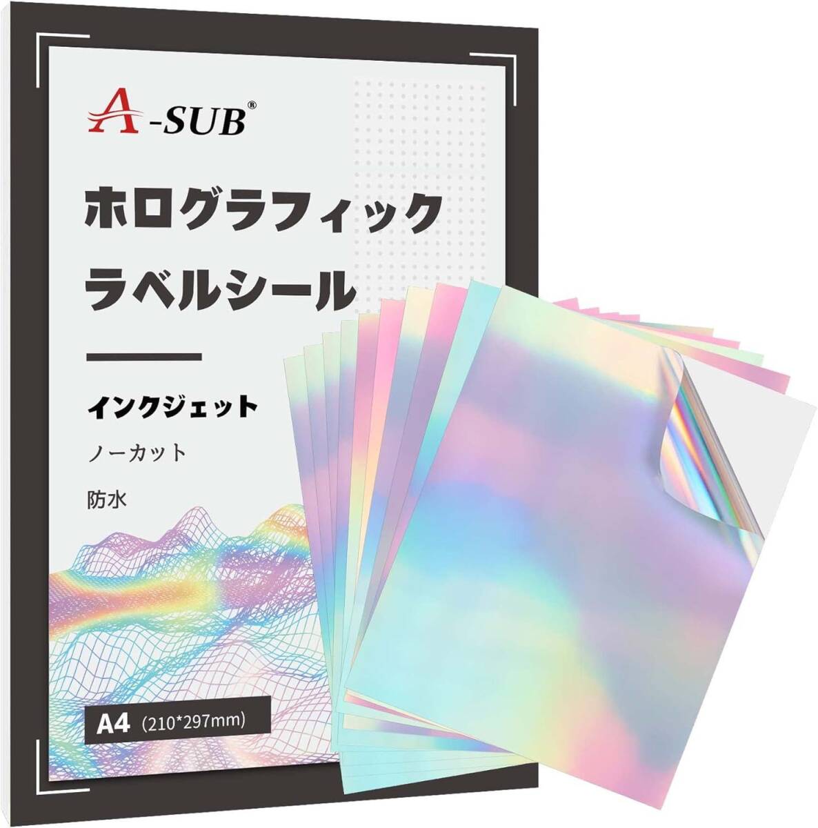 - A-SUB 印刷できる ホログラムラベルシール ステッカー用紙 10枚 染料インク用 はがせる 耐水 光沢 ホログラフィック イン