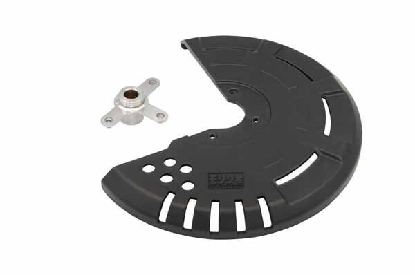ガードは厚みのあるPP樹脂製で頑丈に作られており、林道やオフロード走行中の石や倒木などの予期せぬ接触からフロントブレーキディスクを守ります。