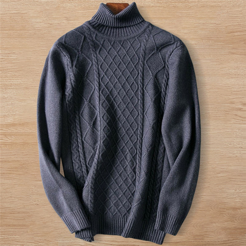 > Y974ダークグレー 新品DCKMANY ウール混 ニット タートルセーター ケーブル編み 柔らか 防寒 暖かさ 秋冬 厚手 メンズ カジュアル トップス