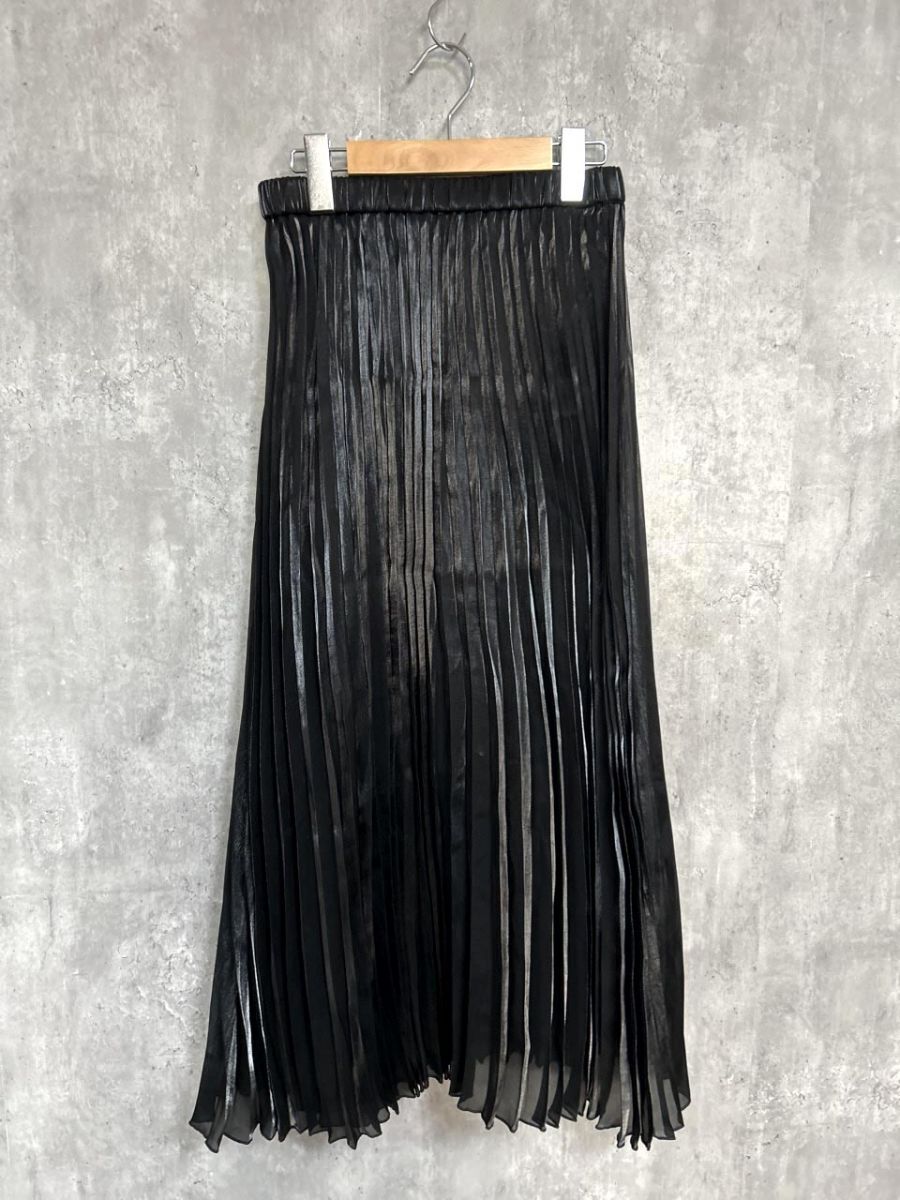 - ネコポスOK LOWRYS FARM ローリーズファーム 光沢 ロング プリーツ スカート sizeF/黒 ■◆ レディース