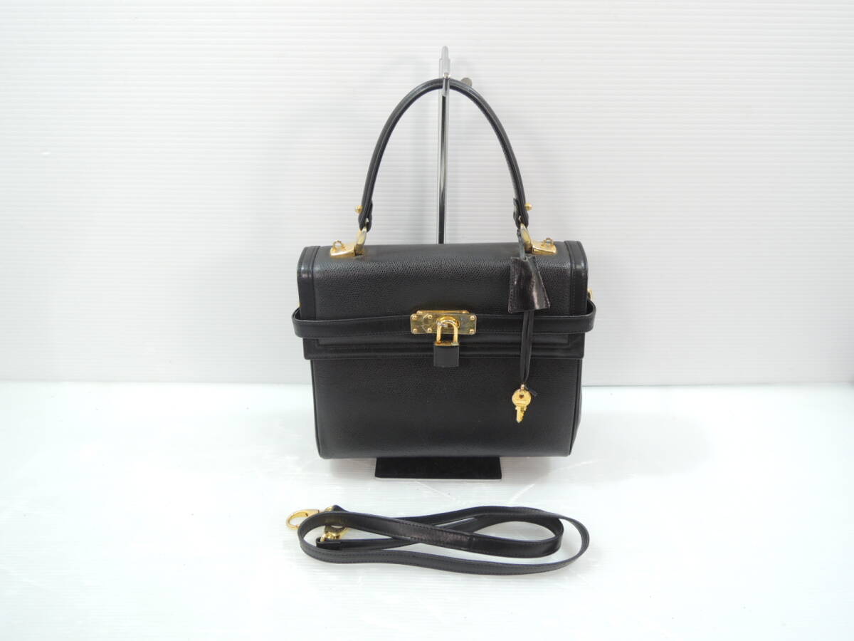 > △ヴィンテージ DELARUE Made in Austria 牛革 オーストリア製 ハンドバッグ 黒/赤 /管理1055A33-01260001