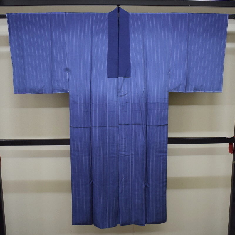 - B19-15【凛々】中古品 正絹 男物 長襦袢 紺ぼかし 縞柄