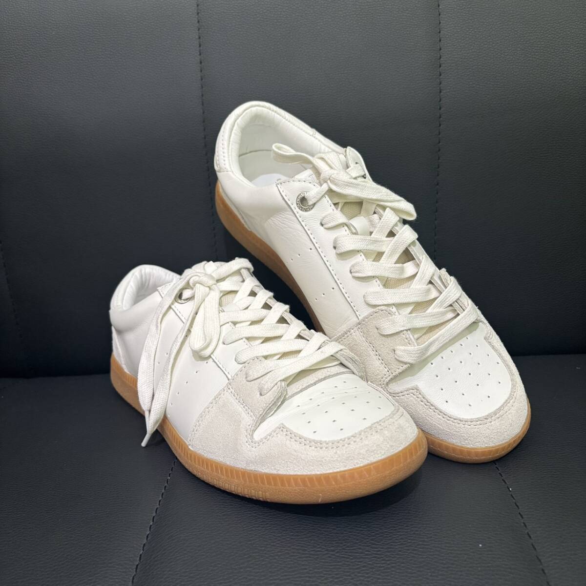 > ◆美品!試着程度 TAKEO KIKUCHI TK レザー ホワイトスニーカー 60サイズ 約26㎝ 大人 カジュアル メンズスニーカー【356MS】J15