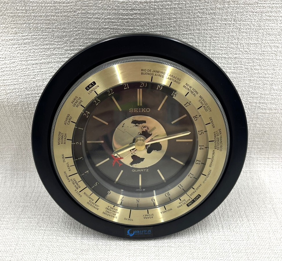 - 【S273】SEIKO/セイコー/置き時計/QZ201K/新岡山空港開港記念/世界時計/記念品/デスククロック/動作確認済み/中古