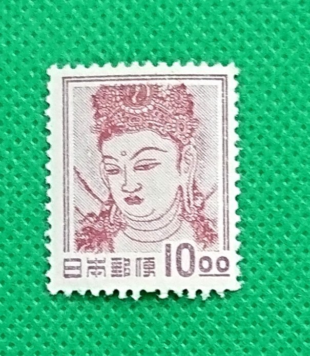 - 法隆寺壁画/10.oo円/昭和すかしなし/美品/NH/OG/糊艶良好/1951年/動植物国宝図案/弥勒菩薩像/カタログ価格4,000円/№1023