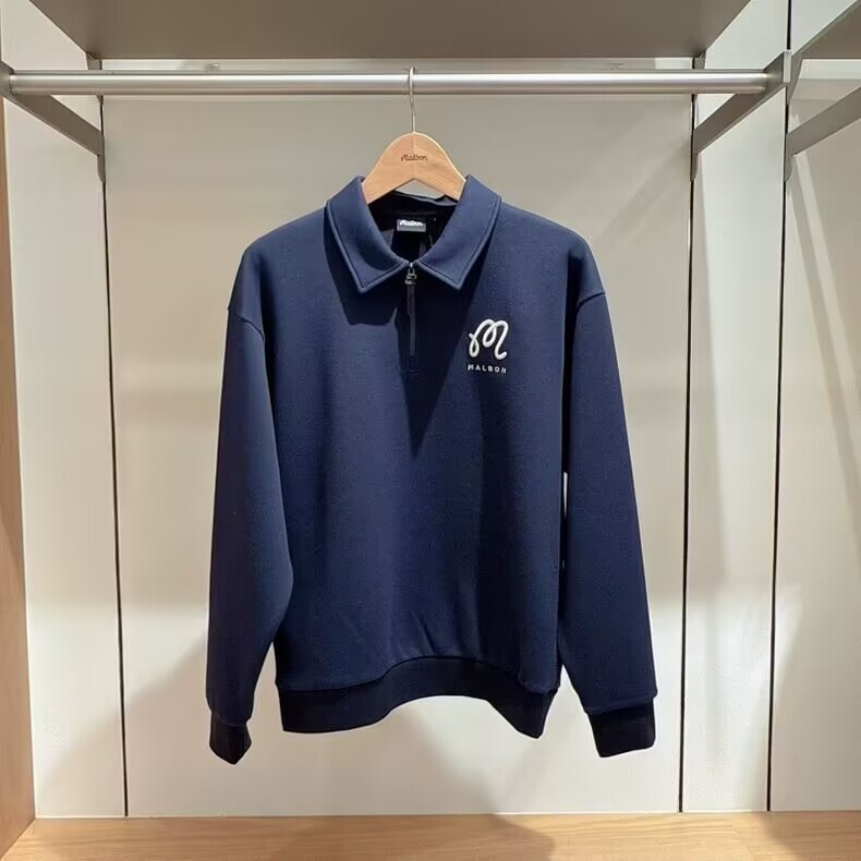 - 超人気! マルボンゴルフ malbon ゴルフ ポロシャツ メンズ 長袖 AW スポーツ M-2XLサイズ選択 ネイビー 9ss0375