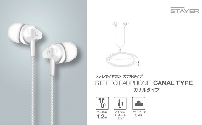 - 送料無料【簡易包装・未使用品】カナル型 有線 イヤホン 長さ1.2m 白■φ3.5mm ステレオミニプラグ■イヤフォン■イヤーピース(S/M/L)つき