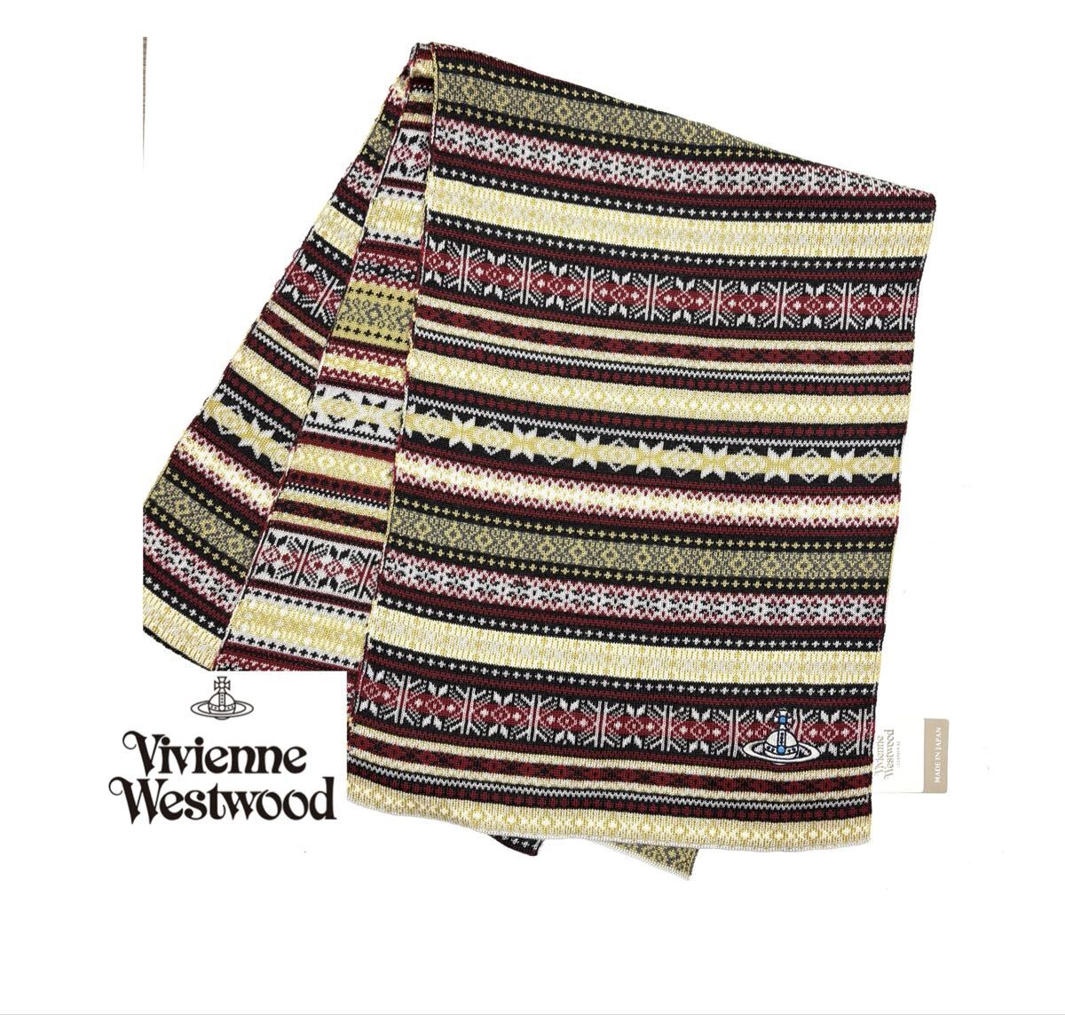 - H 送料無料 新品 正規品 ヴィヴィアン ウエストウッド マフラー ウール100% 日本製 オーブ刺繍