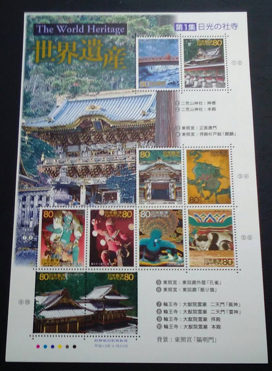 - 2001年・記念切手-第2次世界遺産シリーズ第1集(日光の杜寺)シート