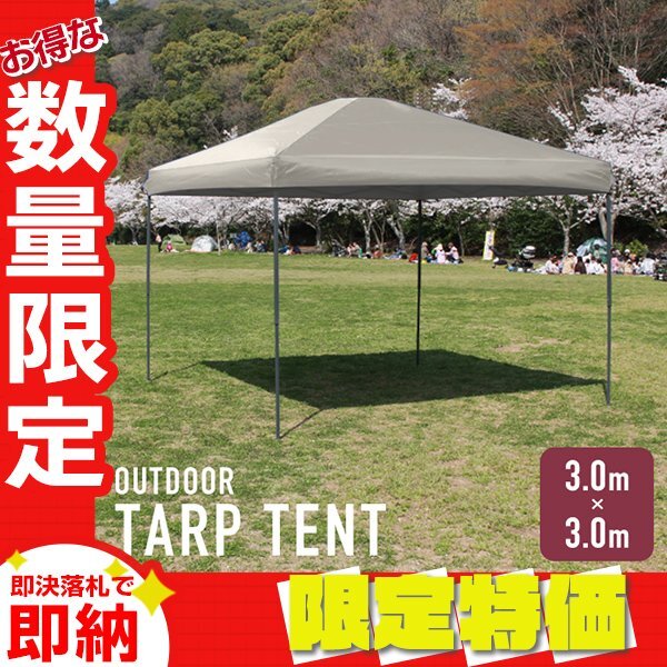 > 【限定セール】タープテント 3m 収納ケース付き 軽量 ワンタッチスチールフレーム 簡単組立 キャンプ アウトドア イベント 庭 BBQ ベージュ