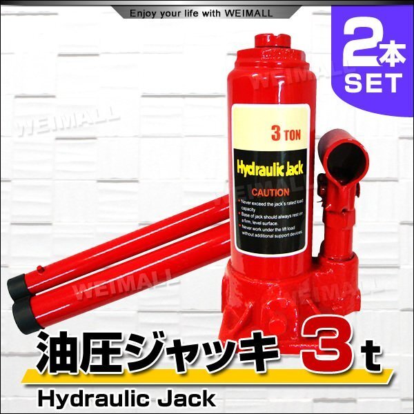 > 【2個セット】油圧ジャッキ 3t ジャッキ 油圧 ボトルジャッキ ダルマジャッキ 油圧式ジャッキ 手動 車 タイヤ ホイール 交換 2段階高さ調整