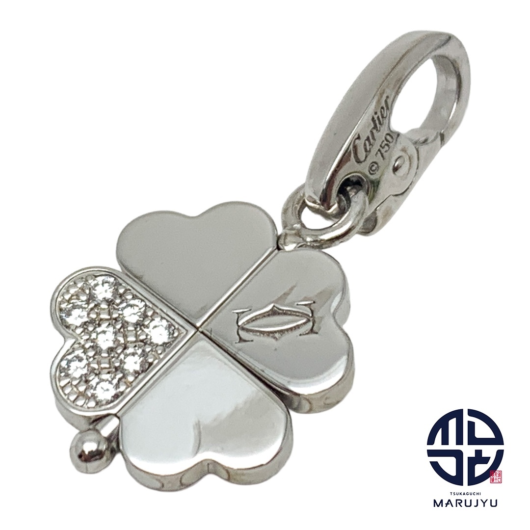 - Cartier カルティエ 750WG 18金ホワイトゴールド K18 ダイヤ 四つ葉 クローバー ペンダントトップ チャーム ジュエリー 幸運 お守り