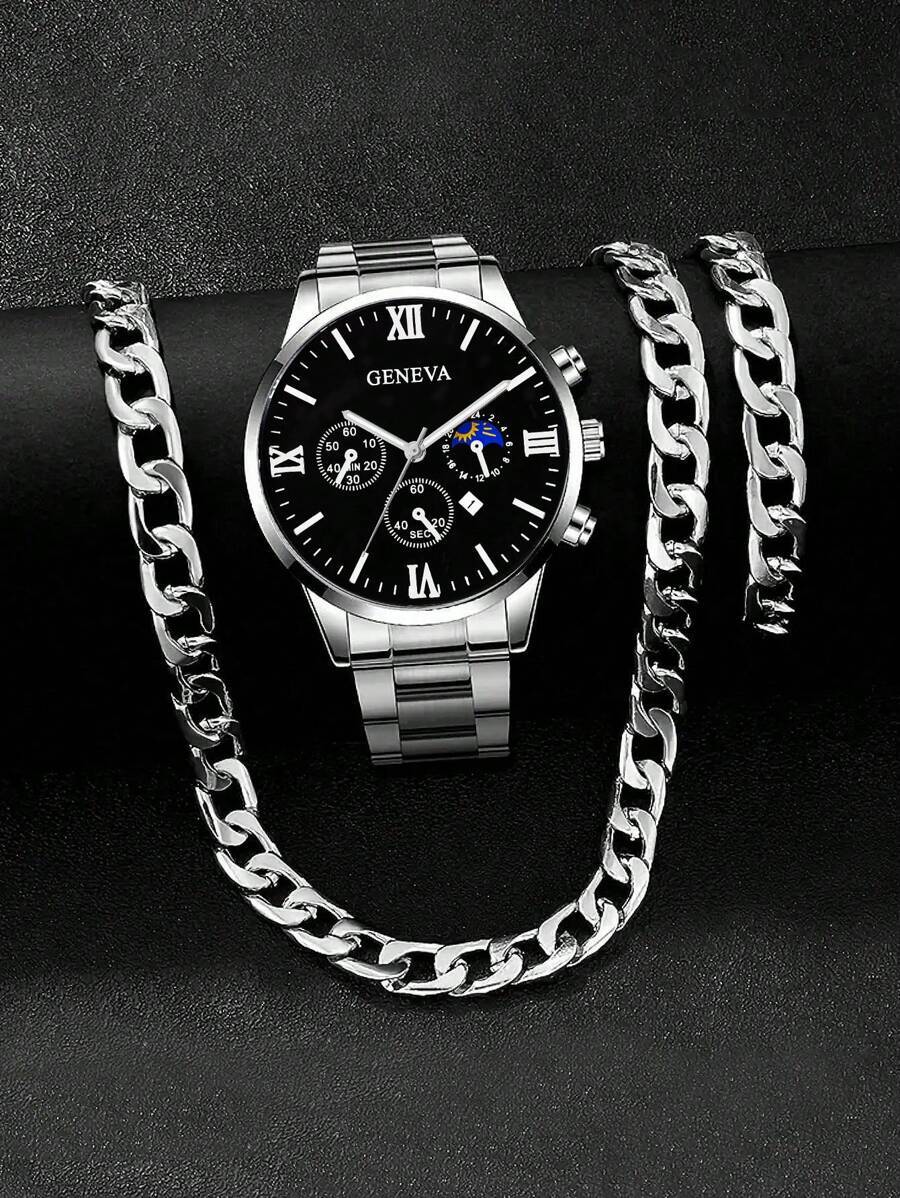 - 腕時計 メンズ セット メンズ&ボーイズカジュアルスポーツステンレス鋼クオーツ腕時計、ブレスレット&ネックレスセット 3点セット
