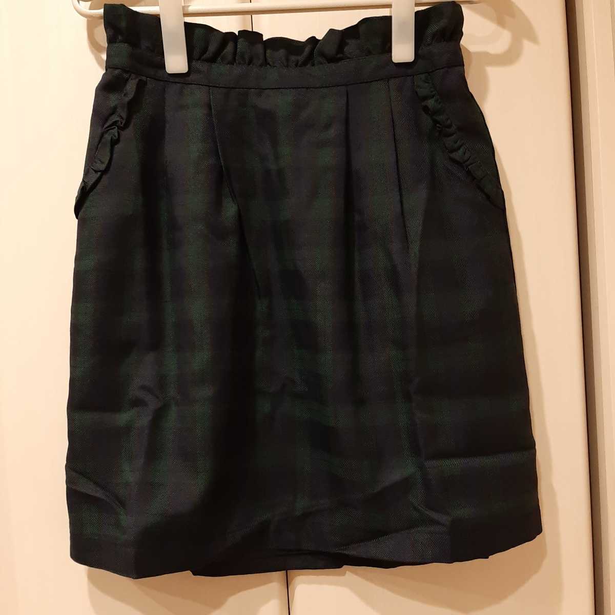 > 新品タグ付き 【Lサイズ 】ブロックチェック 緑 ミニスカート グリーン レディース ポケット付き ウエストゴム 送料無料