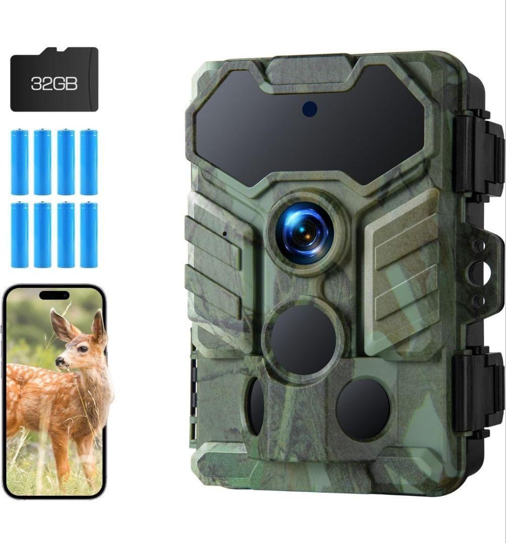 - トレイルカメラwifi 1080P 32MP防犯カメラ屋外 乾電池式 動体検知