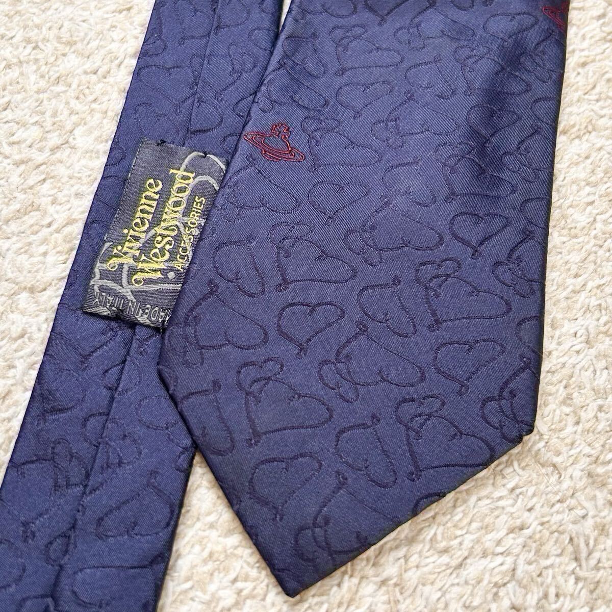 - Vivienne Westwood ヴィヴィアンウエストウッド ネクタイ ハート オーブ 総柄 ダークネイビー紺色 正規品
