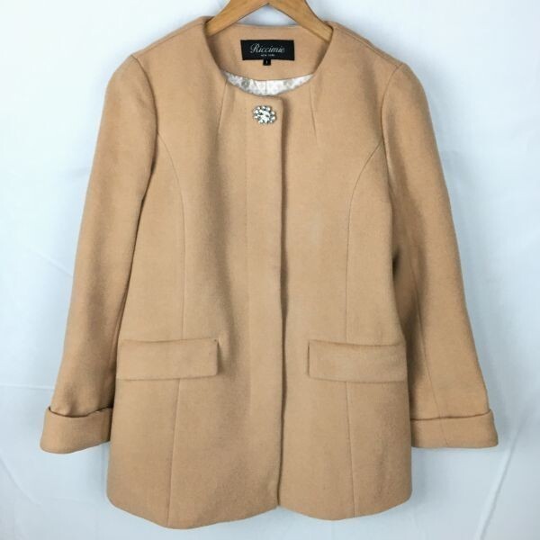 > Made in Japan★ Riccimie/リッチミー ウール ノーカラーコート サイズ1 ピンクベージュ 管NO.A10-21