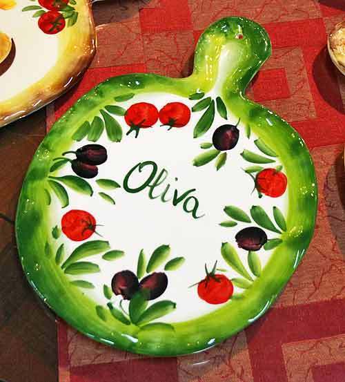 - イタリア製 輸入雑貨 壁飾り カッティングボード ブルスケッタ 陶器 オリーブ トマト リビングスタジオ 直輸入 絵皿 壁掛け BRE-1777OV