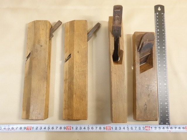 > T953 鉋(30)長期保管品 二次弘 悦英 兼近? 小? 4点まとめて / かんな 大工道具 在銘 古道具 ※詳細に追加画像あり