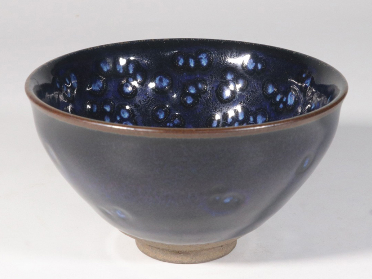 - ▽鴻▽宋時代 陶磁器 建窯黒釉藍曜変天目建盞 共箱 時代物 中国古美術 骨董品