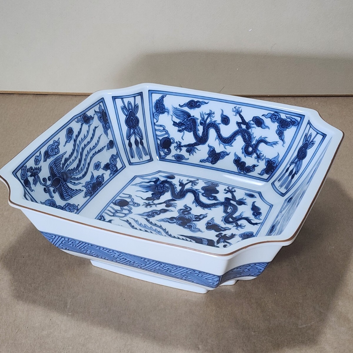 - ノリタケ 若宮 盛鉢 未使用 /龍/鳳凰/染付/隅入/角鉢/大鉢/乃りたけ/食器/陶磁器/