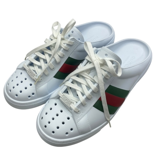 - 未使用 グッチ エース サンダル ミュール ウェブライン スリップオンサンダル ラバー ホワイト GUCCI[サイズ41(約28cm)]
