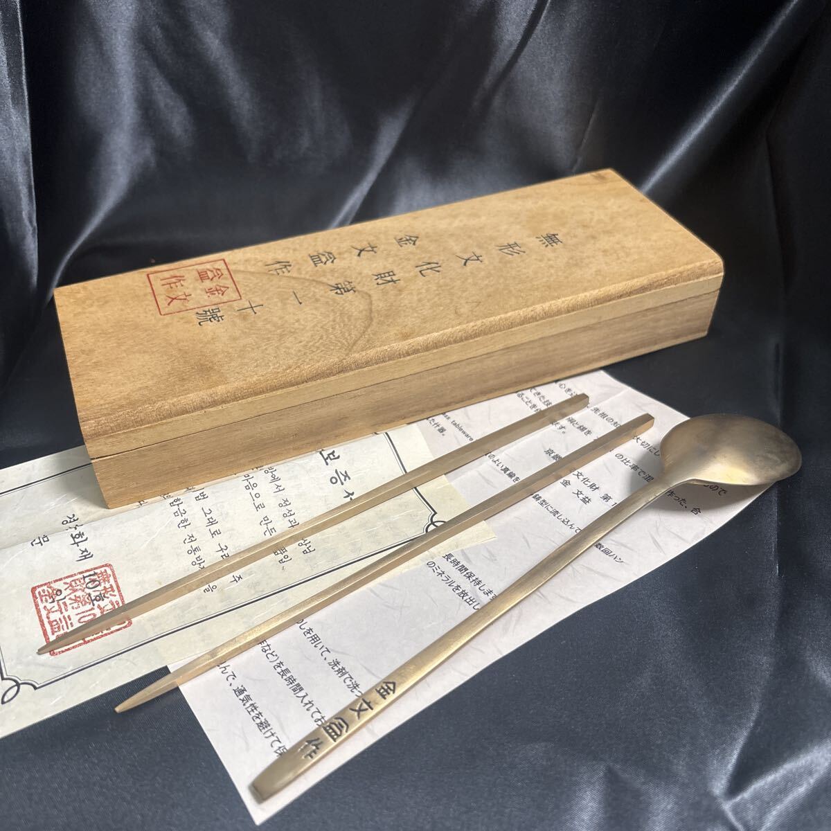 - 【1円〜】カトラリーセット 韓国 無形文化財 第十一号 金文益 チョッカラ スッカラ 真鍮 バンチャ
