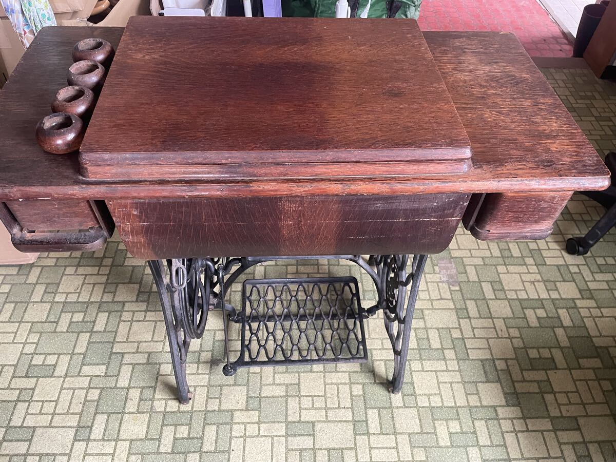- 【引取限定】SINGER/シンガー アンティーク ミシン台 網目鉄脚 ヴィンテージ 足踏みミシン レトロ 希少