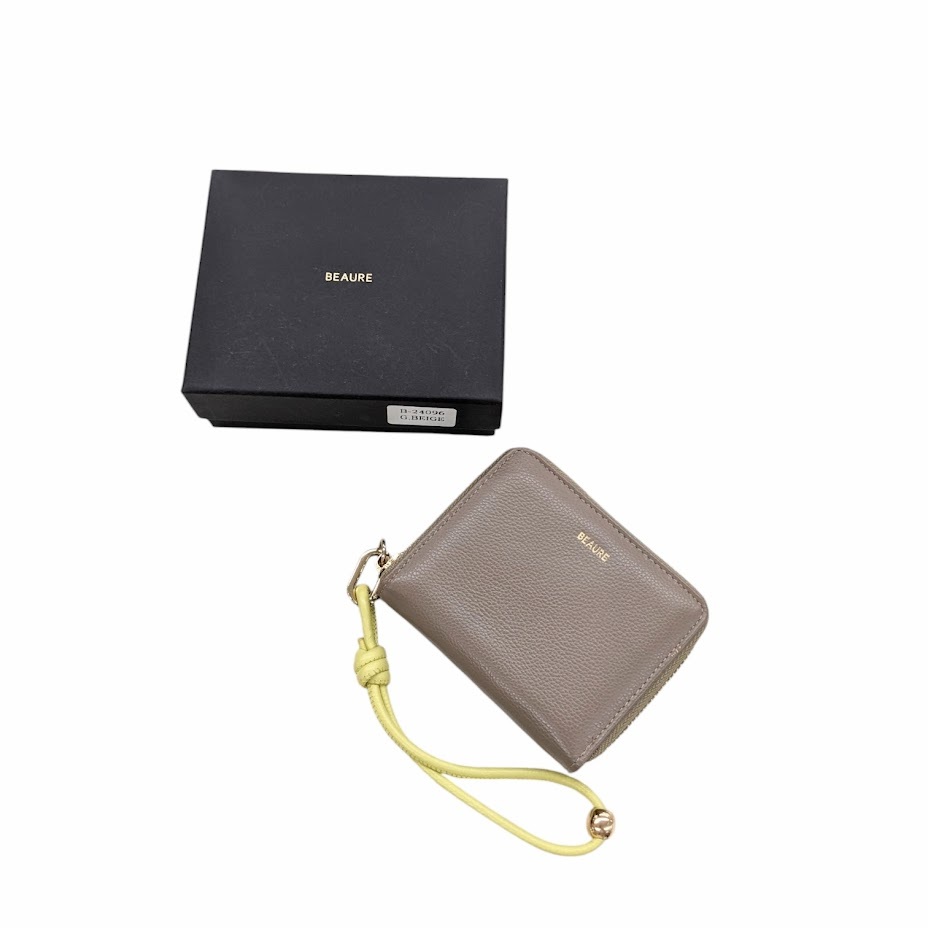 > 未使用品 BEAURE ビュレ B-24096 BEAURE カウレザー ハンドストラップ付き バイカラーラウンドミニウォレット 財布 箱付き
