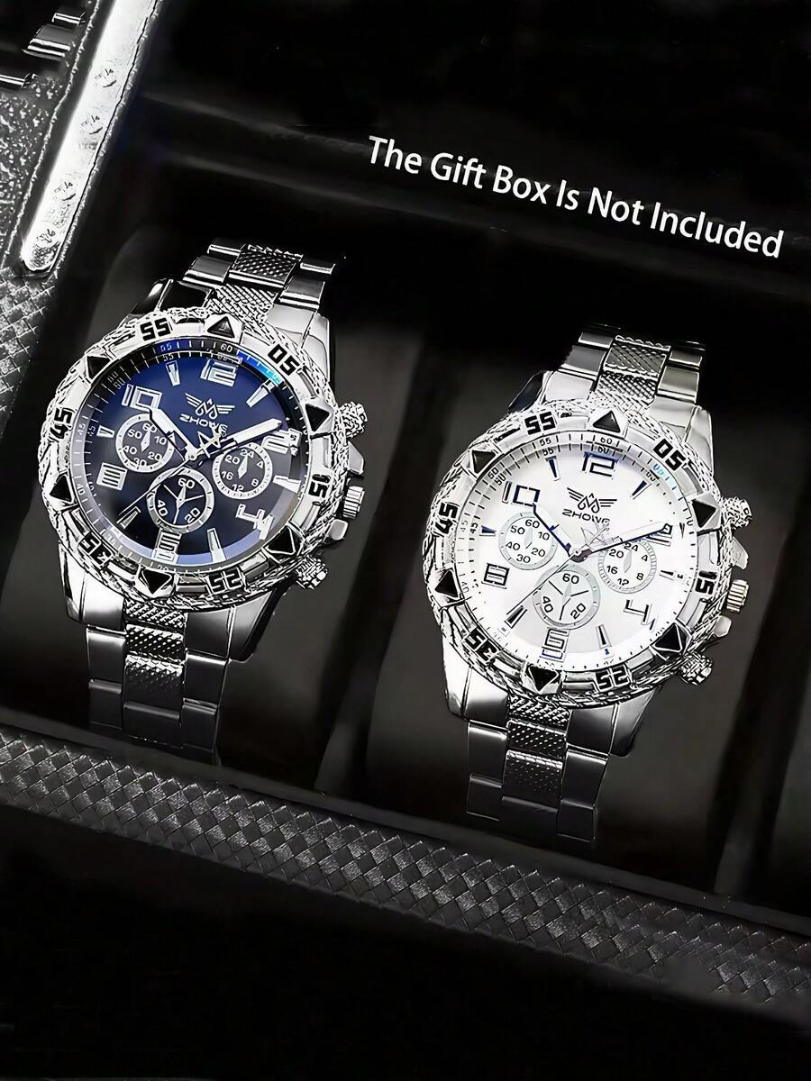 - 腕時計 メンズ セット メンズファッション 3眼数字スケール クォーツ腕時計 スチールバンド 2個セット、スタイリッシュで多用途、
