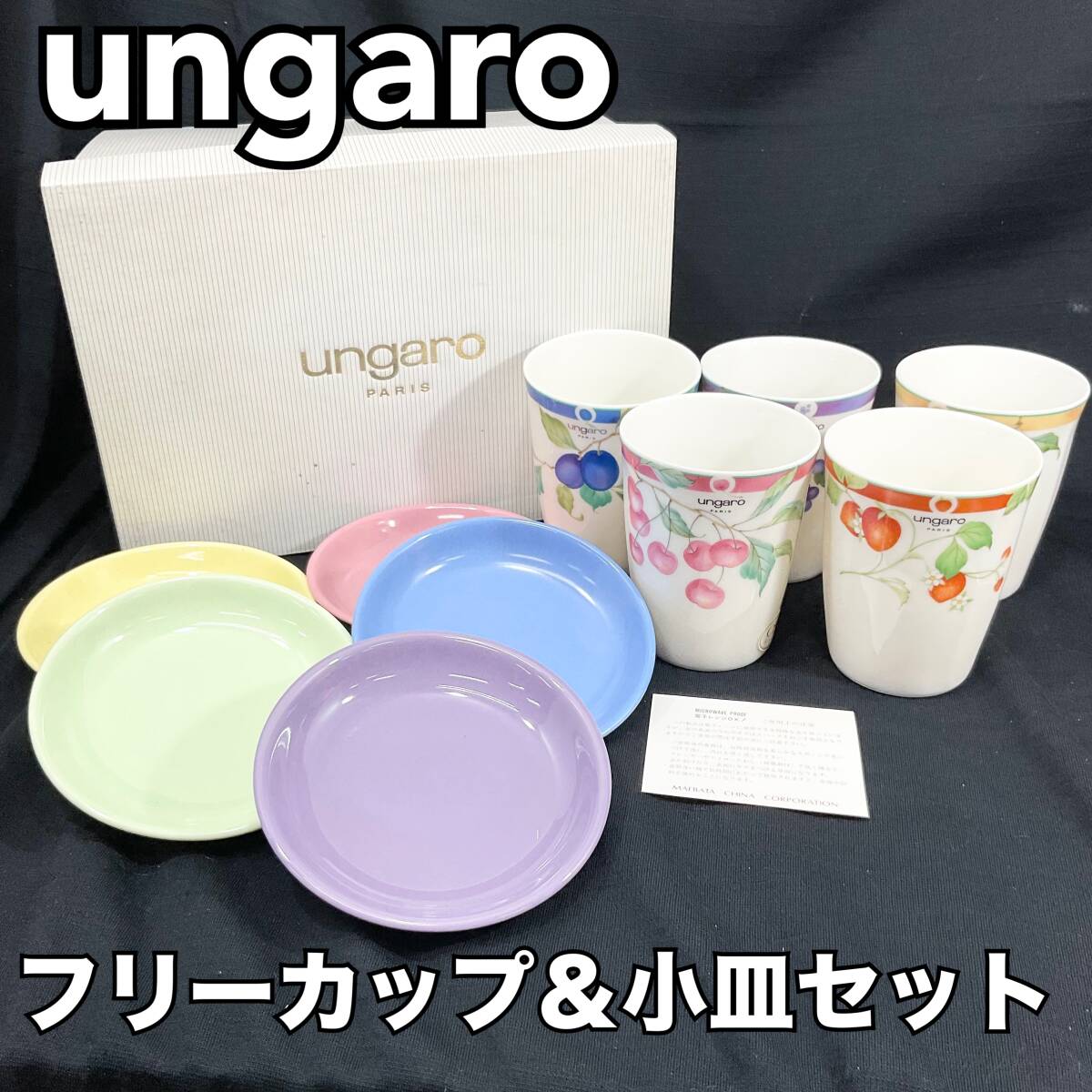 > 【未使用】ungaroフリーカップ 5客 小皿 5枚 10点セット フルーツ柄 カラフル 果物 ウンガロ 電子レンジok 箱付き (E322)