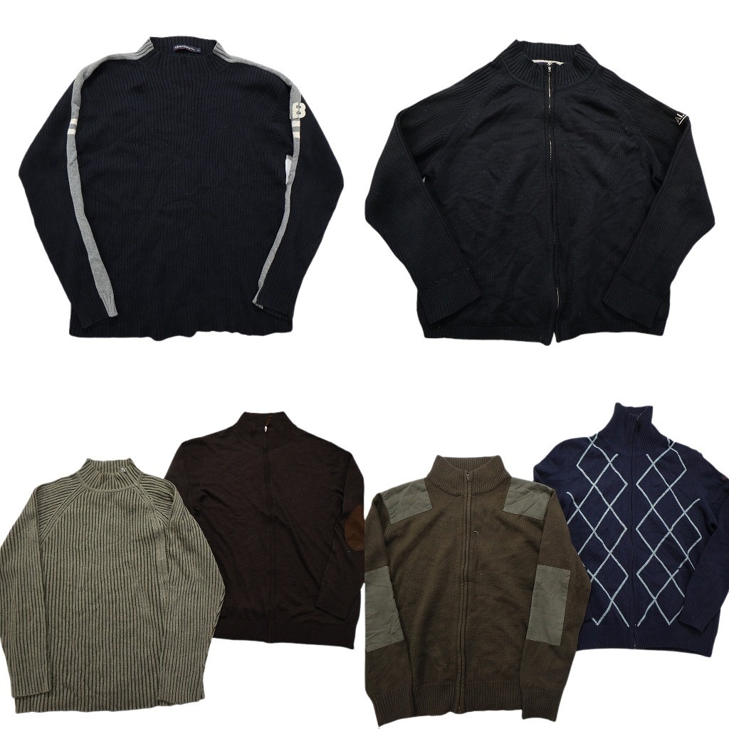 - 古着卸 まとめ売り ドライバーズリブニット セーター 6枚セット (メンズ L ) エルボーパッチ アーガイル柄 フルジップ NC3143 1円スタート