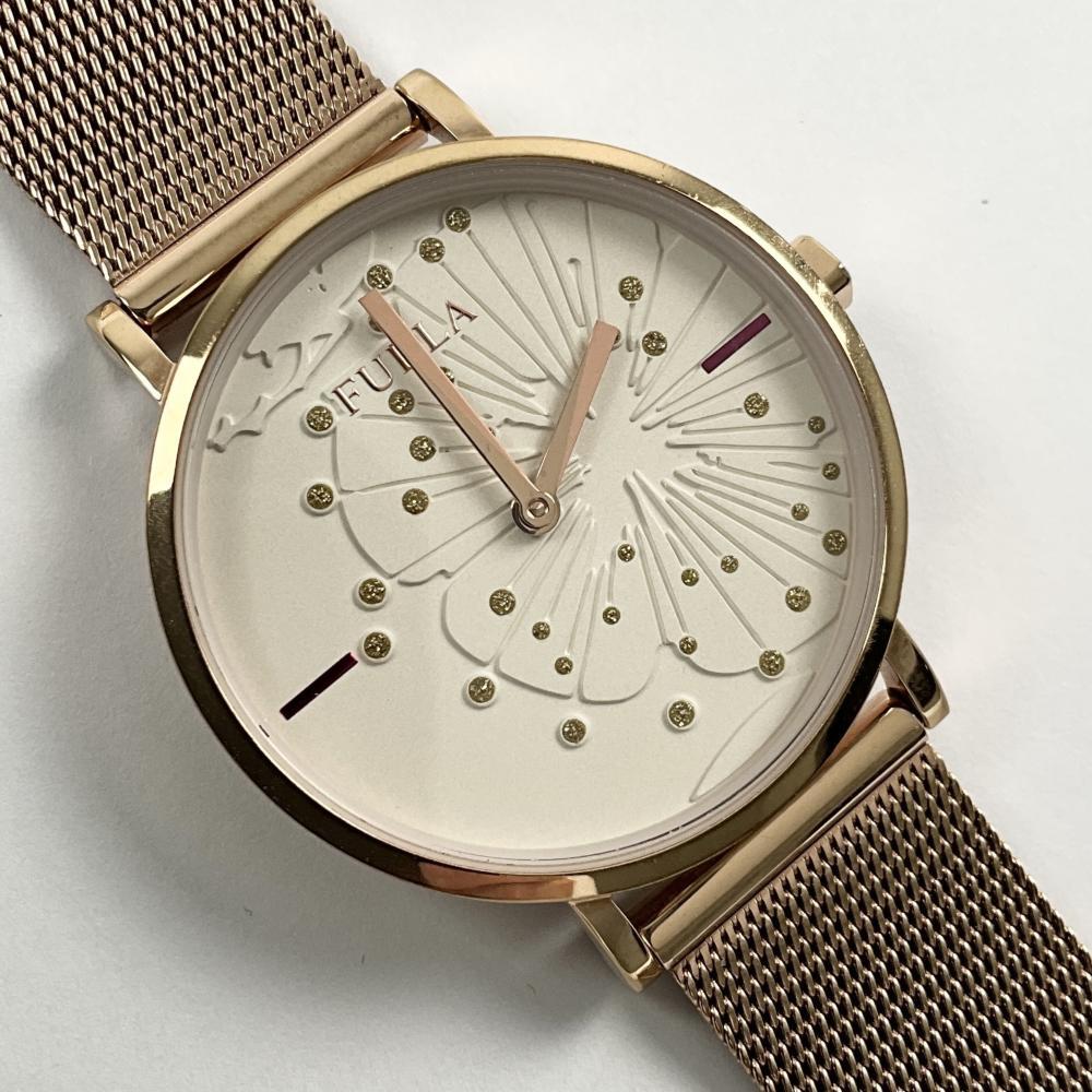 > フルラ FURLA レディース腕時計 R4253108501 フラワー ローズゴールド ホワイト アナログ メッシュベルト