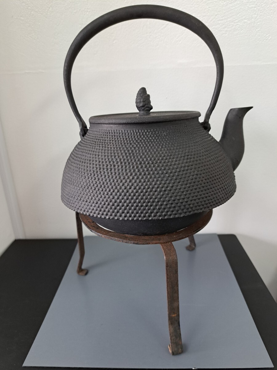 - A510 鉄瓶 宝珠アラレ 鉄瓶置きセット鉄器 鉄分補給 アンティーク