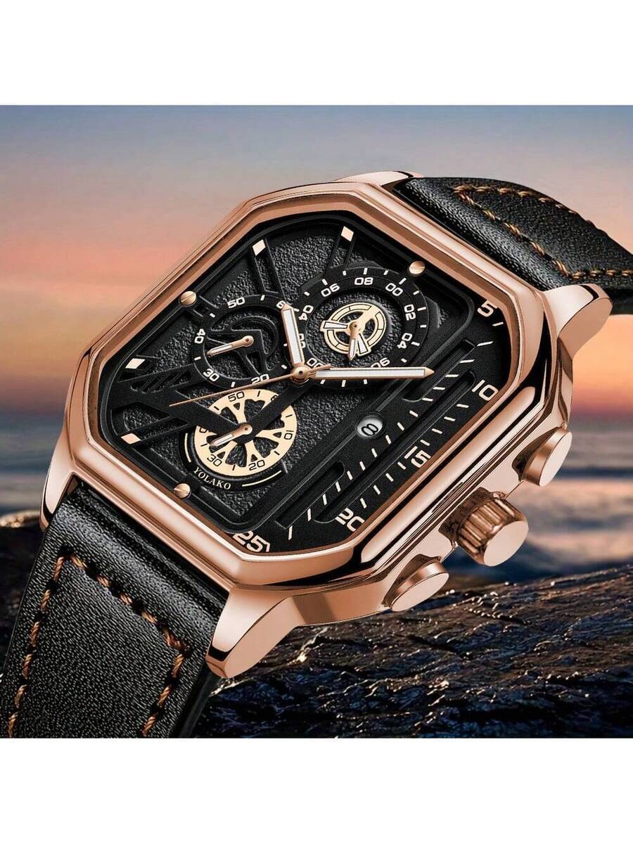 > 腕時計 メンズ クォーツ 1個 メンズカジュアルスポーツ スクエア数字スケールカレンダーダイヤル クラシック クォーツ腕時計 (1