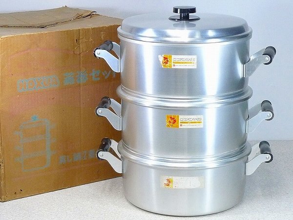 - 1416N06*10B▲HOKUA/ホクア アルミ製 蒸し器セット 蒸し鍋2重セイロ付 30㎝ 蒸篭/蒸籠 スチーマー スチームクッカー 業務用