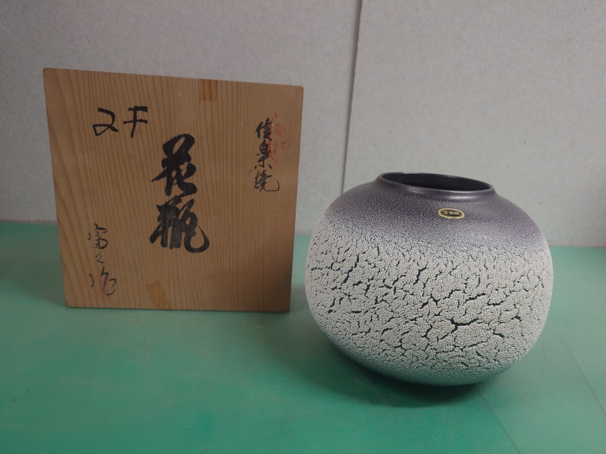 - ● 信楽焼 作家物【小川富久 作】花瓶【残雪】シリーズ 銘 落款 共箱 未使用品 保管品 ③