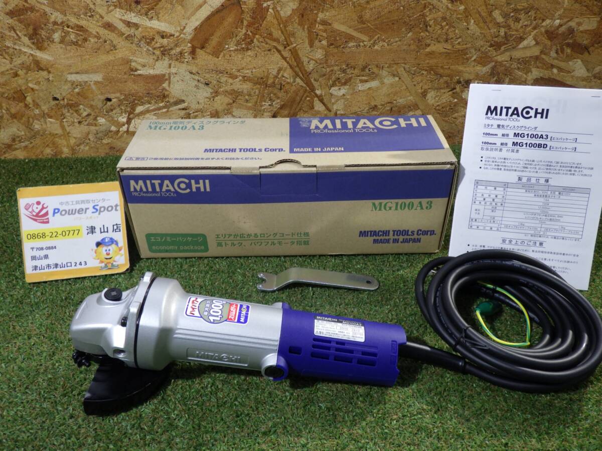 > サンコーミタチ MITACHI 100mm電気ディスクグラインダ MG100A3 電動工具 大工道具 箱に傷み 開封のみ 未使用 251016